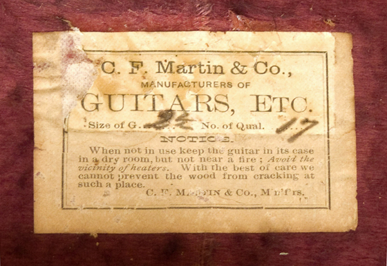 Martin's earliest guitars are stamped "C.F. Martin, New York" on the inside back center strip.